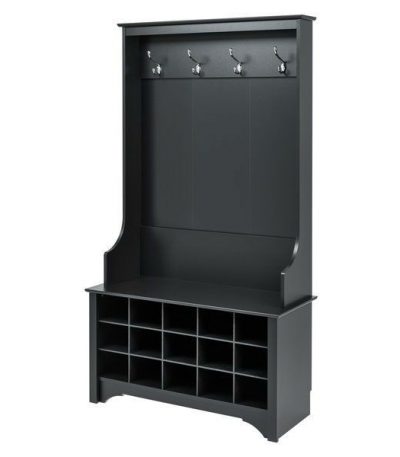 Black Entryway Hall Tree Shoe Cubbie Coat Rack