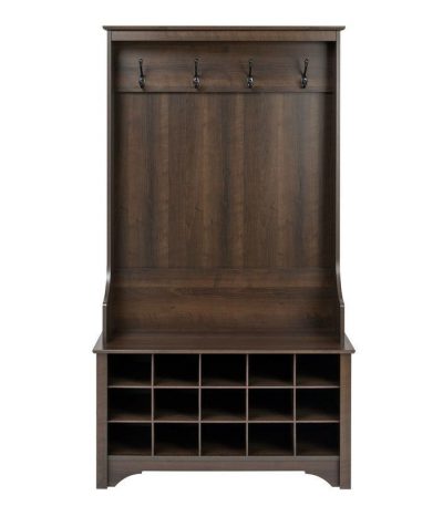 Dark Brown Entryway Hall Tree Shoe Cubbie Coat Rack