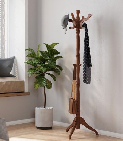 Classic Traditional Solid Wood Coat Rack in Walnut Finish