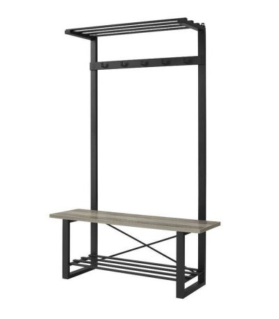 Gray Rustic Sturdy Metal Entryway Hall Tree Coat Rack
