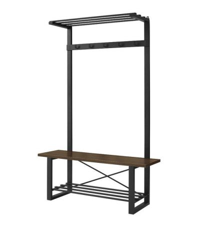 Dark Brown Walnut Rustic Sturdy Metal Entryway Hall Tree Coat Rack