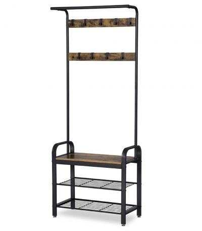 Entryway Modern Industrial Style Hall Tree Coat Rack Shoe Storage Bench