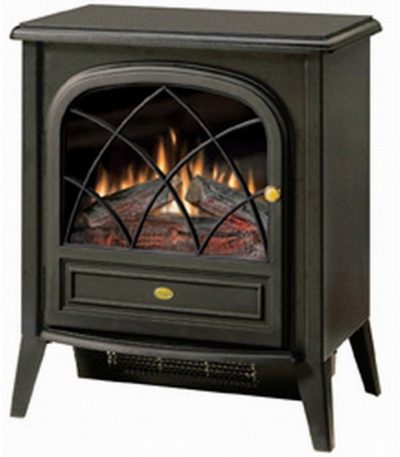Black Compact Stove Style Electric Fireplace Space Heater with 3D Flame