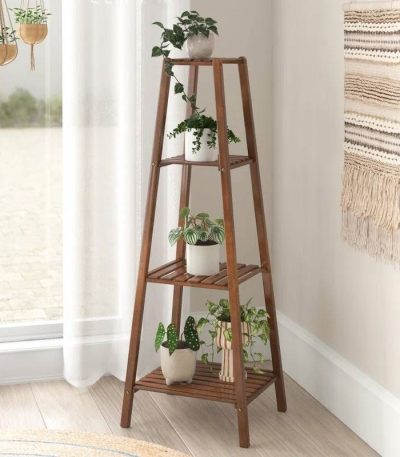 Modern Boho Wooden 4-Shelf Pyramidal Plant Stand
