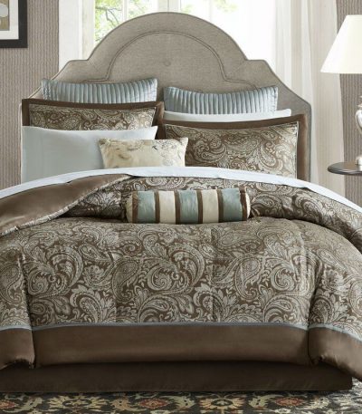 $360.63- California King 12-piece Reversible Cotton Comforter Set in Brown and Blue
