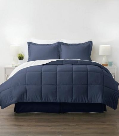 CA King Navy Microfiber Baffle-Box 6-Piece Reversible Bed-in-a-Bag Comforter Set