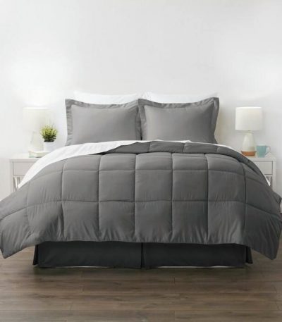 CA King Size 8-Piece Microfiber Reversible Bed-in-a-Bag Comforter Set in Grey