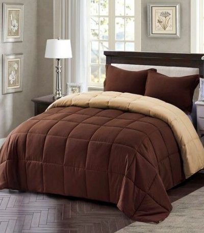 Full/Queen Traditional Microfiber Reversible 3 Piece Comforter Set in Brown