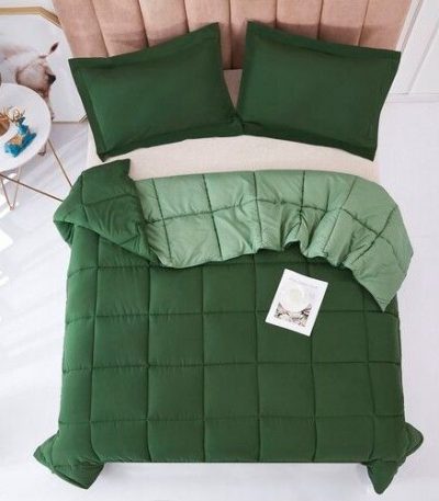 Full/Queen Traditional Microfiber Reversible 3 Piece Comforter Set in Green