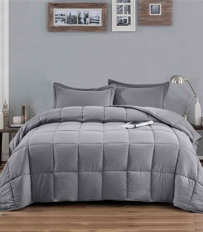 Full/Queen Traditional Microfiber Reversible 3 Piece Comforter Set in Grey