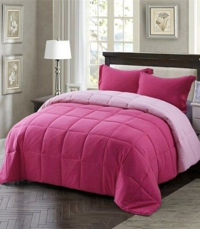 Full/Queen Traditional Microfiber Reversible 3 Piece Comforter Set in Pink