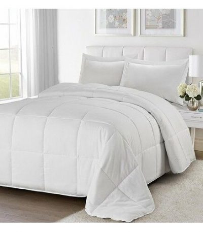 Full/Queen Traditional Microfiber Reversible 3 Piece Comforter Set in White