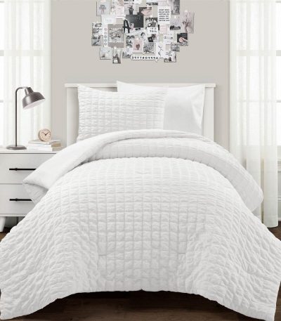 Twin/XL Soft Lightweight Puff Textured 2-Piece Comforter Set in Off White