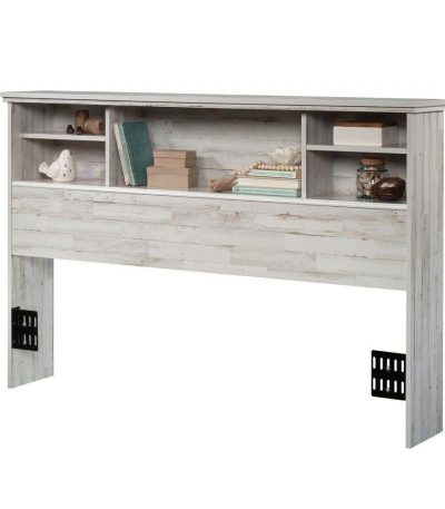 $236.27- Full / Queen size Farmhouse Bookcase Headboard in Grey White Wood Finish