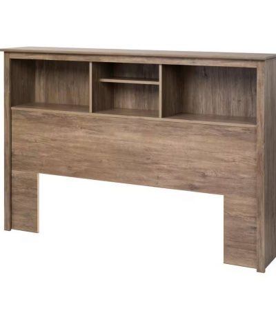 Full / Queen size Freestanding Bookcase Headboard in Grey Brown Wood Finish