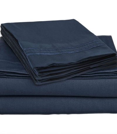 $66.70King size 4-Piece Wrinkle-Free Microfiber Sheet Set in Navy Blue Machine wash on cold Tumble dry on low Fade Resistant Wrinkle Free No Ironing Necessary Deep Pockets – with fully elasticized fitted sheet guarantees a secure fit for mattress depths from 16″ Brushed Microfiber – with cool lustrous feel and a very soft silky touch Easy Care -Wrinkle-free Machine wash in cold and tumble dry on low