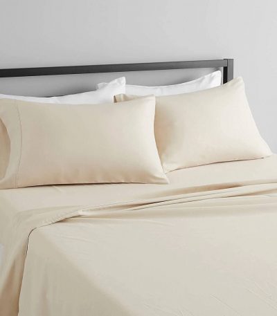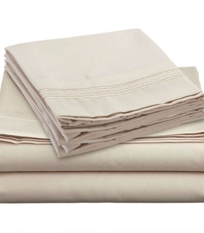 $66.70King size 4-Piece Sheet Set in Beige Cream Brushed Microfiber Machine wash on cold Tumble dry on low Fade Resistant Wrinkle Free No Ironing Necessary Deep Pockets – with fully elasticized fitted sheet guarantees a secure fit for mattress depths from 16″ Brushed Microfiber – with cool lustrous feel and a very soft silky touch Easy Care -Wrinkle-free Machine wash in cold and tumble dry on low