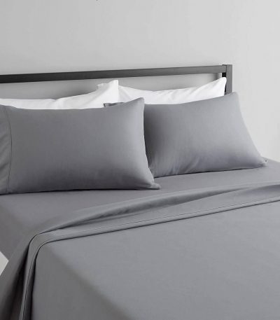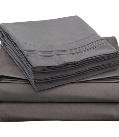 $66.70King size Microfiber Sheet Set in Charcoal Stone Gray Machine wash on cold Tumble dry on low Fade Resistant Wrinkle Free No Ironing Necessary Deep Pockets – with fully elasticized fitted sheet guarantees a secure fit for mattress depths from 16″ Brushed Microfiber – with cool lustrous feel and a very soft silky touch Easy Care -Wrinkle-free Machine wash in cold and tumble dry on low