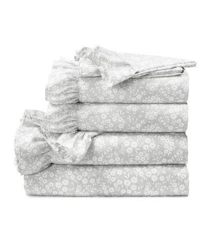 King size Grey Ruffle Floral Polyester 6 Piece Sheet Set