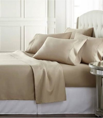 King size Ivory Beige 6-Piece Wrinkle Resistant Microfiber/Polyester Sheet Set