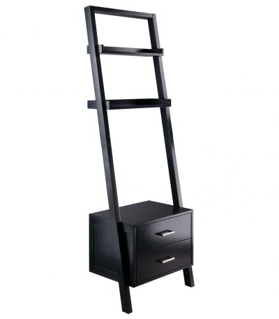 Modern Black 2 Drawer Entryway Shelf Leaning Ladder Bookshelf Bookcase