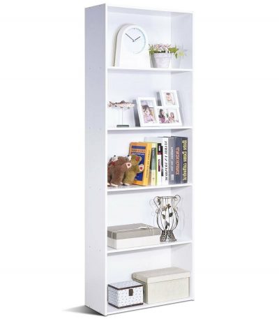 Modern 5-Tier Bookcase Storage Shelf in White Wood Finish