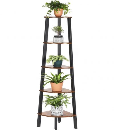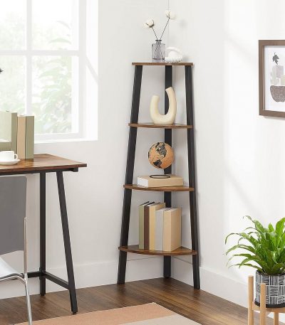 - VINTAGE INDUSTRIAL STYLE: Matte black frame combined with vintage shelving, this corner shelf unit is sophisticated and stylish, matches well with your other furniture; sized 13.4″L x 13.4″W x 49.2″H (34 x 34 x 125 cm)