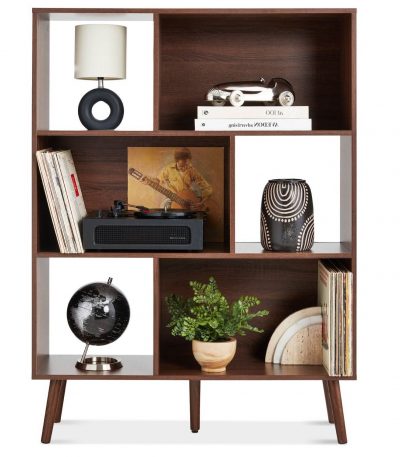 Mid Century Style Bookcase Storage Shelving Unit in Walnut Wood Finish