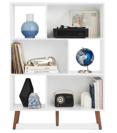 Mid Century Modern Style Bookcase Storage Shelving Unit in White Wood Finish
