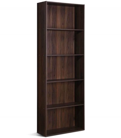 Modern 5-Tier Bookcase Storage Shelf in Brown Walnut Wood Finish