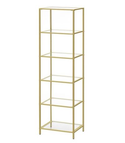 Narrow Glass Shelf Bookcase Bedroom Living Office Bath Storage Unit in Gold