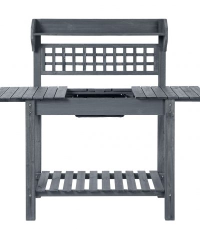 Grey Wood Outdoor Garden Potting Bench Storage Shelf with Removeable Sink