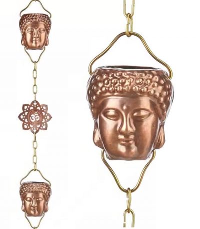 8.5 ft. Buddha Head Cups and Ohm Ornaments Copper Rain Chain Gutter Downspout