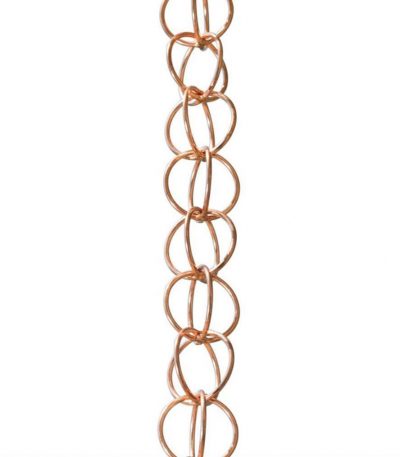 $191.05Pure Copper Rings 8.5-ft Rain Chain Rain Gutter Downspout Double-ring style, beautiful interlocking rings Quality copper-crafted 100L x 2W inches, rings are 2 in. x 2 in. Low water sound Material: Copper