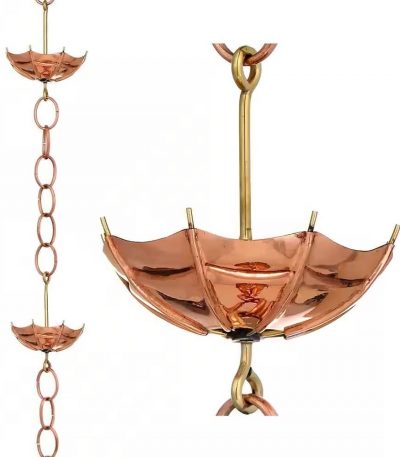 8.5 ft. Copper Umbrella Rain Chain Gutter Downspout with Brass Accessories
