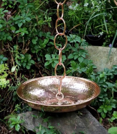 - Functional design – this is the perfect anchor and catch basin for your rain chain; this will prevent the rain chain from blowing in heavy winds and collects the water so it can be reused in the garden. We recommend adding rocks inside the basin for a stylish look