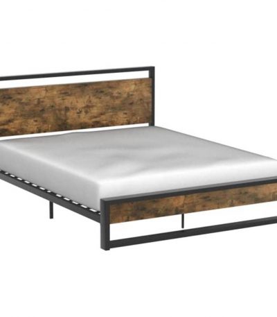 Queen Size FarmHouse Metal Wood Platform Bed Headboard Footboard