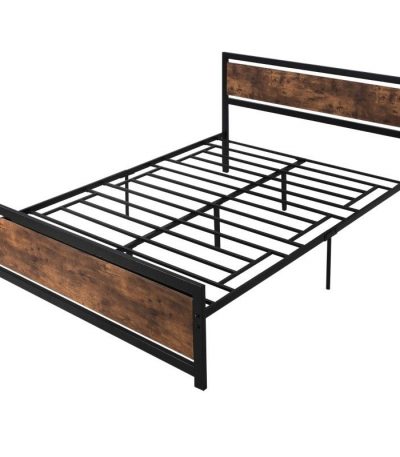 - Industrial Styling: Black metal frame is with a beautifully accented wood headboard and foot board, This metal bed is suitable for any bedroom.