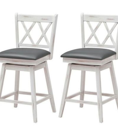 $258.88- Set of 2 White Wood 24-in Counter Height Farmhouse Swivel Cushion Seat Barstools