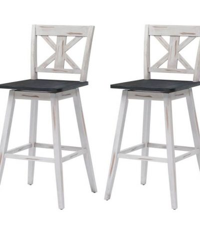 $304.10- Set of 2 White Wood 29-in Modern Kitchen Dining Farmhouse Swivel Seat Barstools