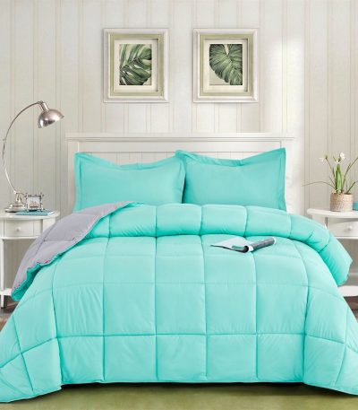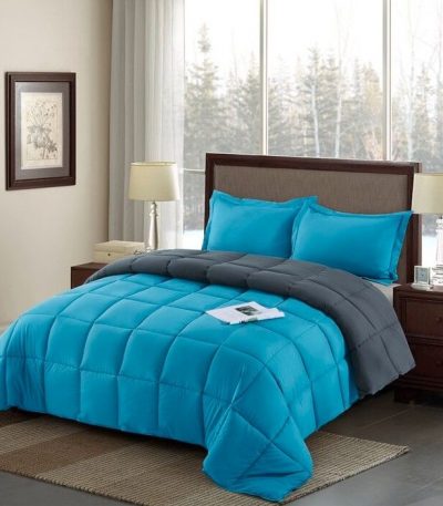 Full/Queen Traditional Microfiber Reversible 3 Piece Comforter Set in Blue/Grey