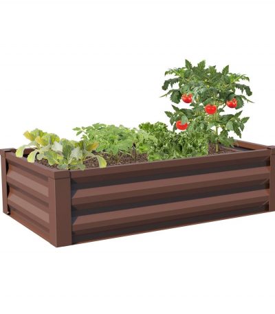 Assembled in minutes and built to last! Build an impressive victory garden with the Brown Powder Coated Metal Raised Garden Bed Planter Made In USA 24″ W x 48″ L x 10″ H. This sturdy planter allows you to easily build and yield a successful garden without tools. The sidewalls slide into the corner piece and simply lock into place using a keyhole locking mechanism. This garden bed is made out of pre-galvanized powder-coated steel making it rust resistant and allowing it to last. Set the open bottomed frame on any level outdoor space, Add soil, plants, seeds, and begin growing the garden of your dreams!
