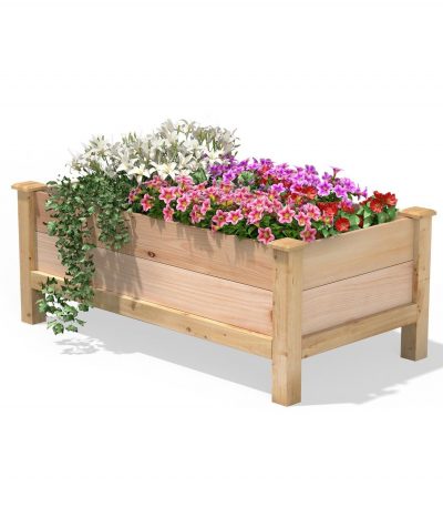 Grow time!! Ideal for patios, decks, balconies or any outdoor space. The Farmhouse 24-in x 48-in x 19-in Cedar Elevated Victory Garden Bed – Made in USA let you create that impressive victory garden youÂ’ve always wanted, at the perfect height for planting, maintaining and harvesting veggies, herbs and flowers. ThereÂ’s no kneeling or bending over! Thoughtfully designed and durable, with interlocking joints that simply slide together, they bring the natural beauty of premium cedar to your outdoor décor. Premium quality: pre-sanded, untreated 3/4 in. thick cedar boards simply lock into corner posts with a few taps from a rubber mallet, with thicker boards than our value and original lines, premium beds are an exceptional choice for your victory garden. Designed for drainage: small gaps between the floorboards allow excess water to drain away, while the included fabric liner holds soil in place. Sustainably sourced: premium cedar is harvested from managed forests, naturally rot– resistant, chemical-free cedar is safe for fruits and vegetables