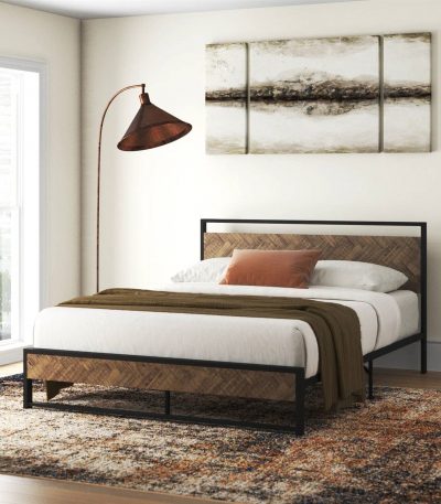$270.19- Queen Modern Industrial Metal Platform Bed Frame with Wood Headboard Footboard