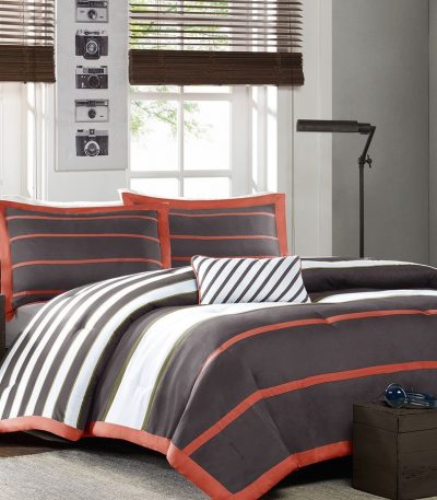 Twin / Twin XL Comforter Set in Dark Gray Orange White Stripes