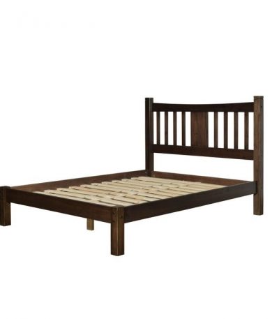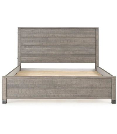 Create the perfect centerpiece for your rustic or country bedroom with this Queen Solid Wooden Platform Bed Frame with Headboard in Grey Wood Finish. The platform bed includes the headboard, footboard, side rails, and a 12-piece slat support system, so you don’t even need a box spring! The bed is made of solid pine wood with your choice of available distressed, rustic finish. The slat-style headboard and footboard create a simple, versatile look. Steel-wrapped accents on the feet complete the farmhouse-inspired design. Choose from available sizes to fit your bedroom.
