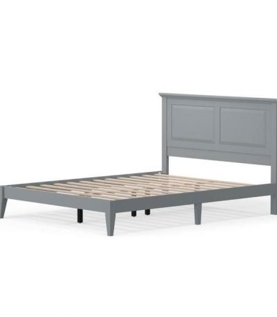 • Queen Solid Wooden Platform Bed Frame with Headboard in Grey Wood Finish