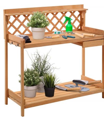 • Outdoor Home Garden Wooden Potting Bench with Storage Drawer