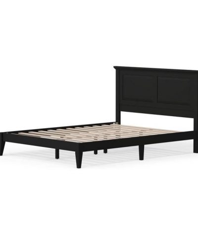 This Queen Size Retro Solid Oak Wooden Platform Bed in Black with prominent headboard is a must have for any bedroom! Inset panels and retro molding that adds refined elegance to any bedroom or guest room. It is crafted from solid oak, a naturally hard and durable wood. Platform bed sits on straight and slightly tapered legs that raise this bed almost 8 inches off the floor. This system of slats eliminates the need for a box spring and works best with any standard mattress (recommended 10 inches of thickness). Assembly is required.