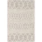 This 3-ft. x 5-ft. Hand Woven Wool Blend Grey Beige Ivory Persian Style Area Rug elevates your living room with a motif inspired by classic Persian textile arts and lodge-inspired style. It’s handmade in India from 65% wool, and 35% polyester – a material that’s naturally durable, hypoallergenic, and stain-resistant. The design features a high-low pile height with rows of cream geometric patterns that stand out against the gray background. This makes it a great choice for creating a cozy environment in lower-traffic rooms. We recommend rolling out a rug pad underneath to keep it securely in place.